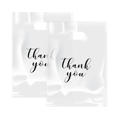 Bolsas de fuelle lateral de plástico PE transparente de 100 piezas con asas troqueladas para favores de fiesta y pequeñas empresas